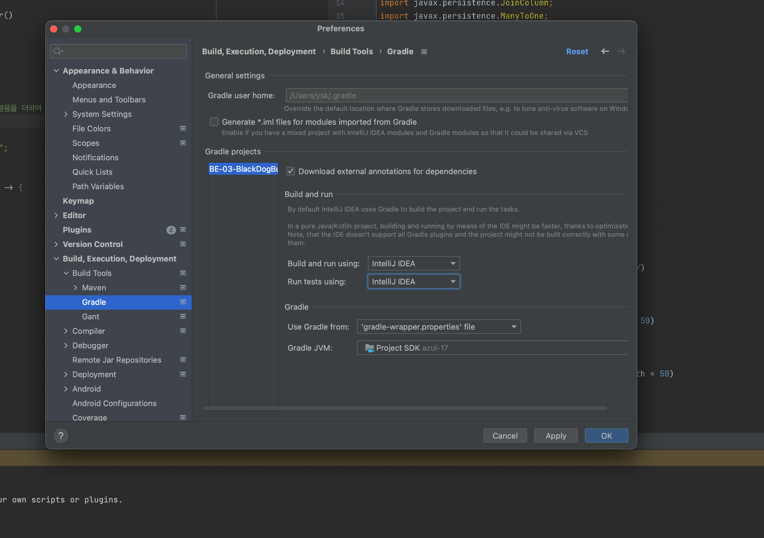 같은 에러 발생시에는 Preference -> Build.Execution, Deployment -> Build Tools -> gradle