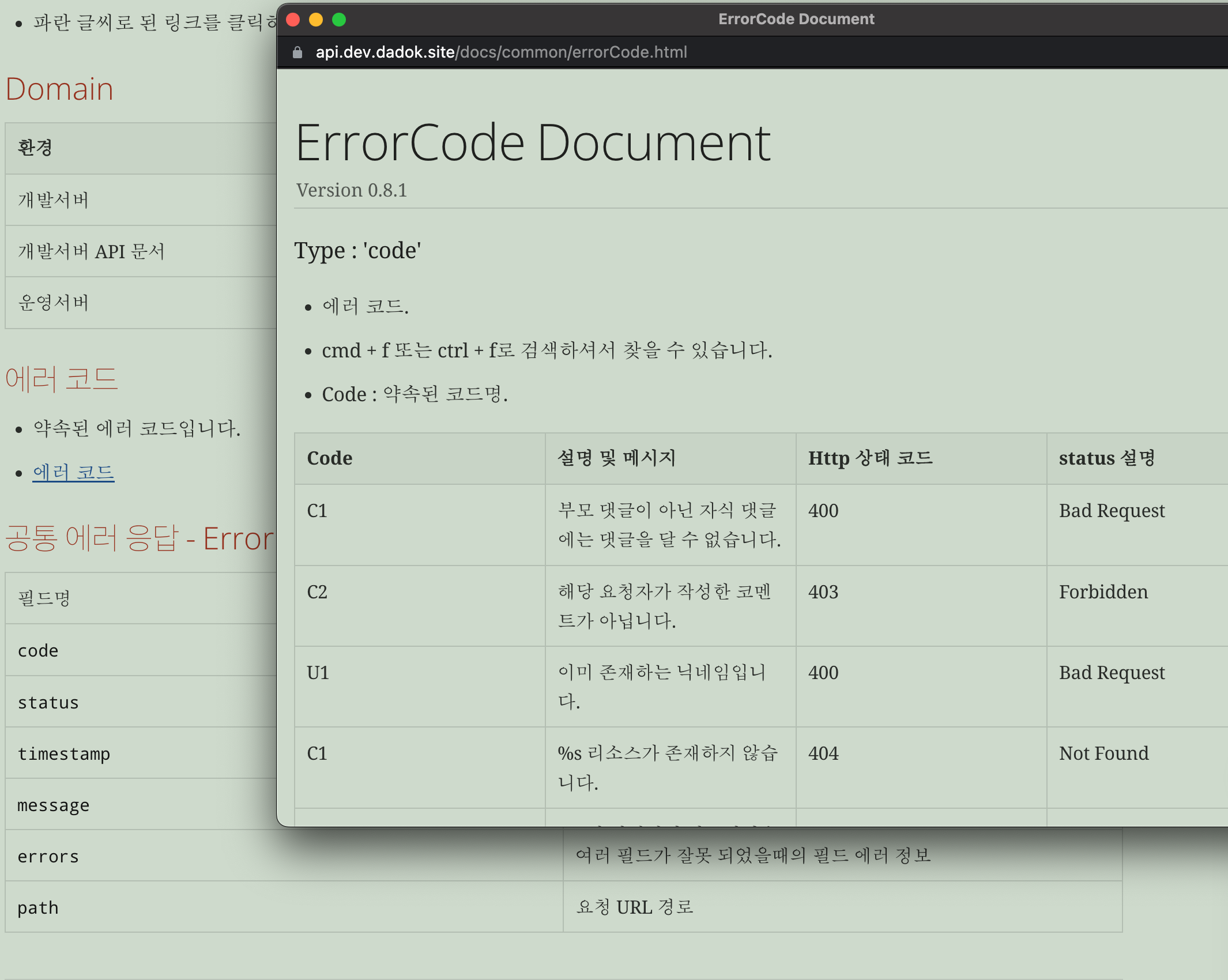 정의한 errorCode를 문서화를 자동화하여 보여주기로 하였습니다.