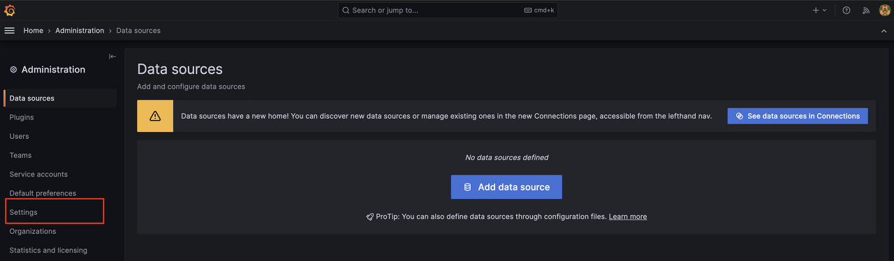 - 왼쪽 하단에 있는 설정(Configuration) 버튼에서 Data sources를 선택.