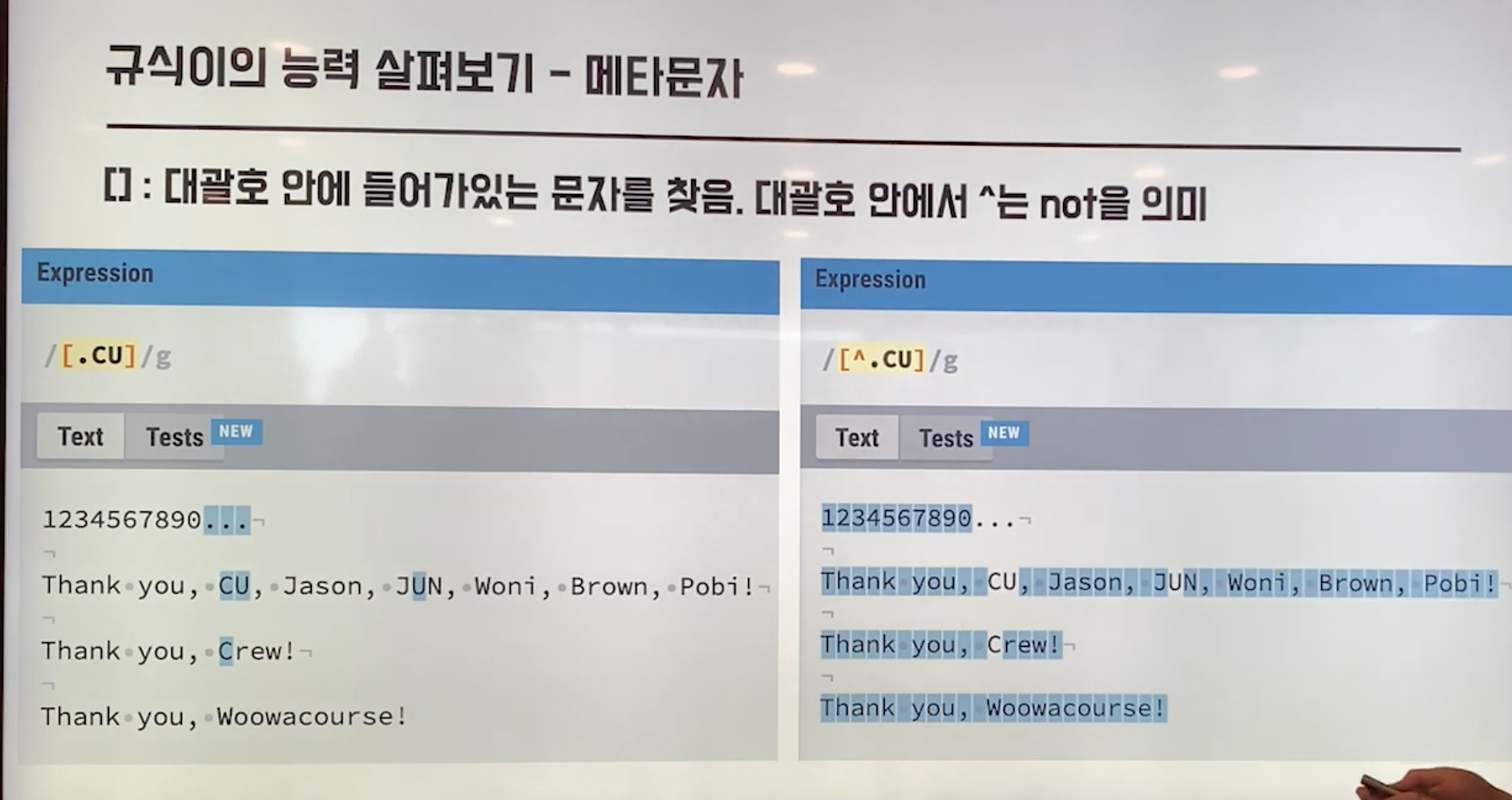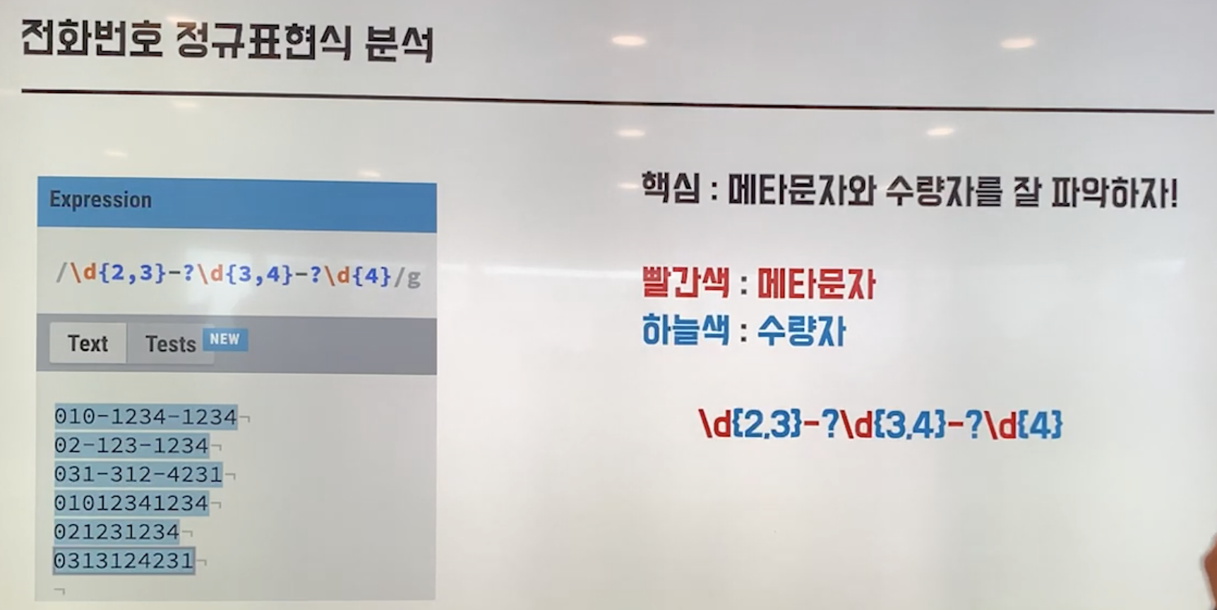 - 메타문자와 수량자를 구분해서 정규표현식을 파악하자
