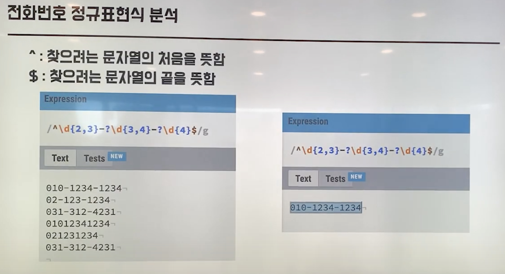 - 패턴에 맞는 010-1234-1234만 찾는다.