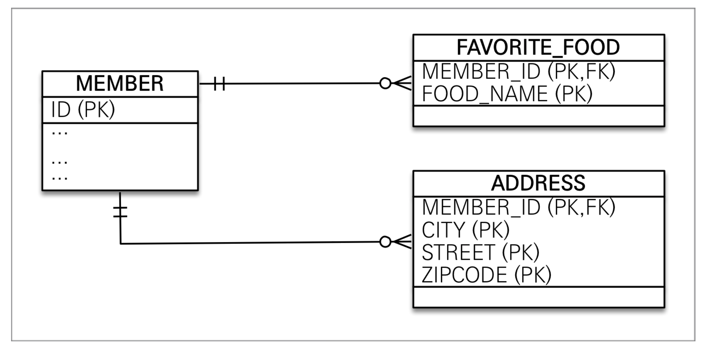 address 3가지 zipcode street city member_id묶어서 pk를 만들어야된다