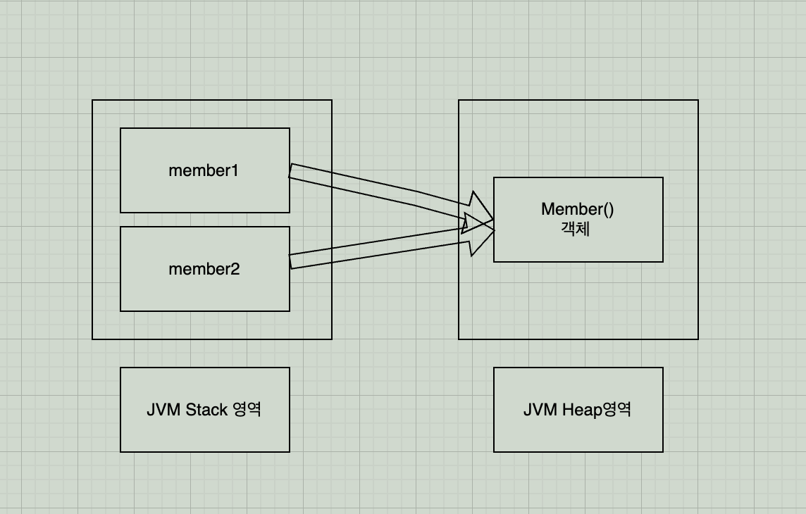 이 때 두 변수가 동일한 객체를 가리키게 되므로 두 변수는 동일하다고 할 수 있다.