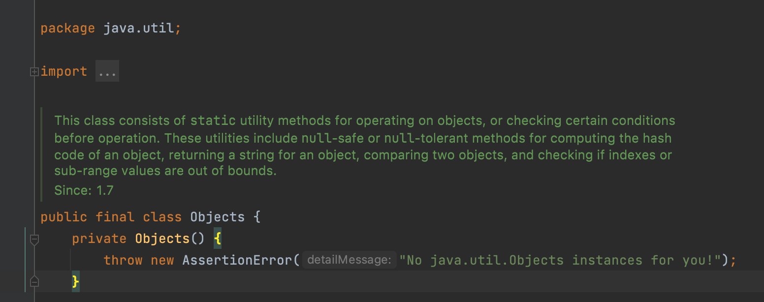 Object 와 유사한 이름을 가진 java.util.Objects 클래스는 객체 비교, 해시 코드 생성, null 여부,